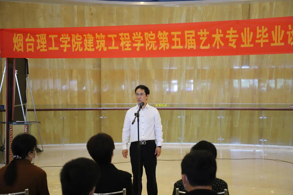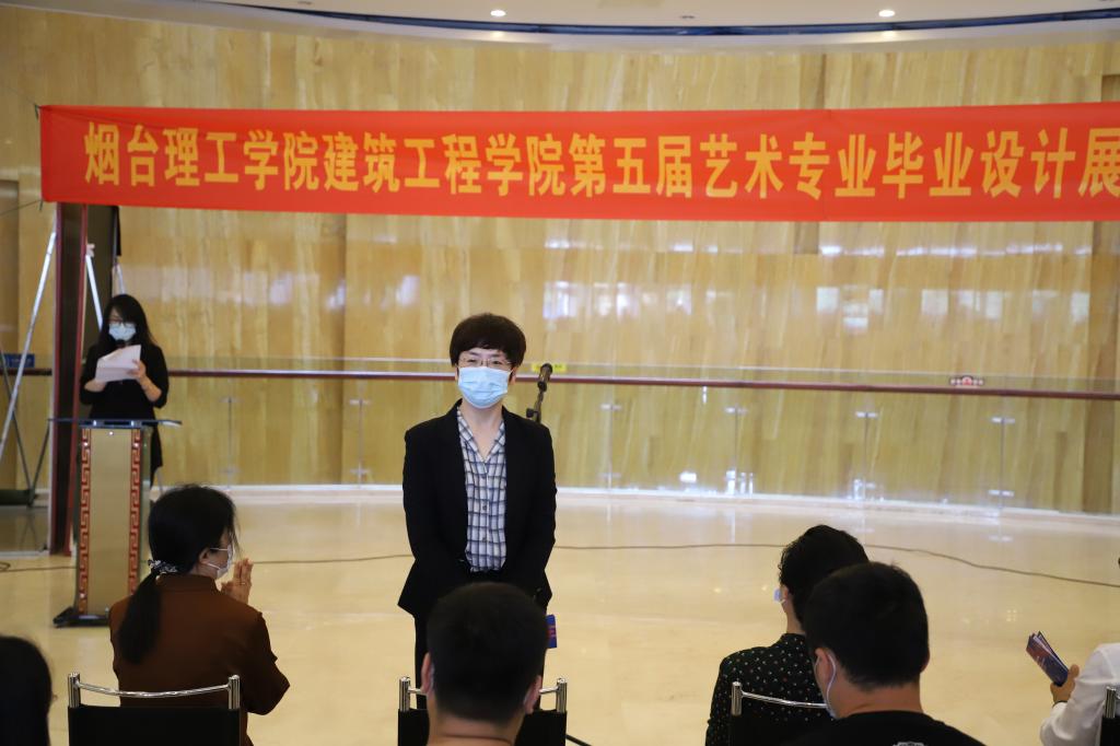 活动开始后,建筑工程学院视觉传达设计教研室负责人田娜老师对本次展览活动进行了介绍;烟台理工学院校长于光辉致开幕词,他向艺术专业老师同学表示祝贺,对各位领导嘉宾莅临展览现场表示衷心的感谢。他强调艺术设计专业学生不仅要学会将书本知识转化为技术和技能,更重要的是应将艺术创新与其实用性、应用性紧密结合。他勉励同学们把握好专业特点,不负时光,努力开创灿烂美好的明天。