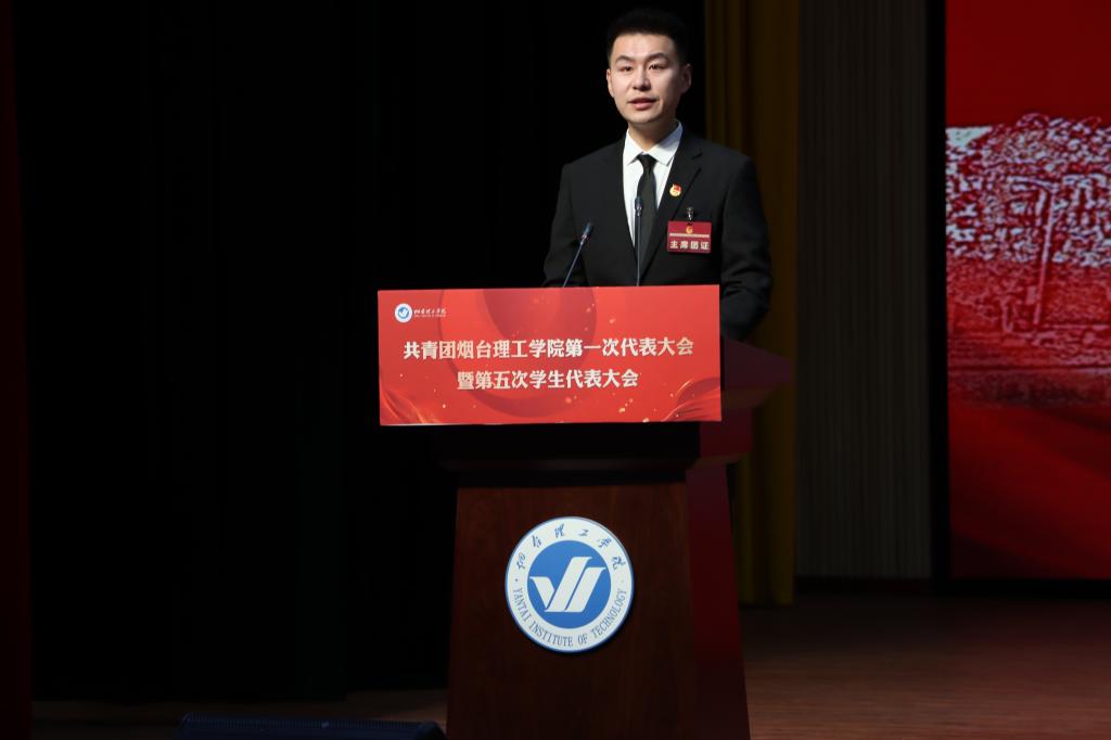 校团委书记申海滨代表共青团烟台理工学院委员会作了工作报告。报告全面系统的总结回顾了近五年学校共青团工作取得的成绩,分析了新时代背景下,站在学校转型升级的新起点,学校共青团工作面临的新形势新任务。