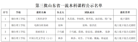 近日,山东省教育厅公布了第三批山东省一流本科课程认定结果,我校成功获批4门,取得了省级一流本科课程认定门数和认定率的双重突破。截止目前,我校已获认定省级一流本科课程共6门。