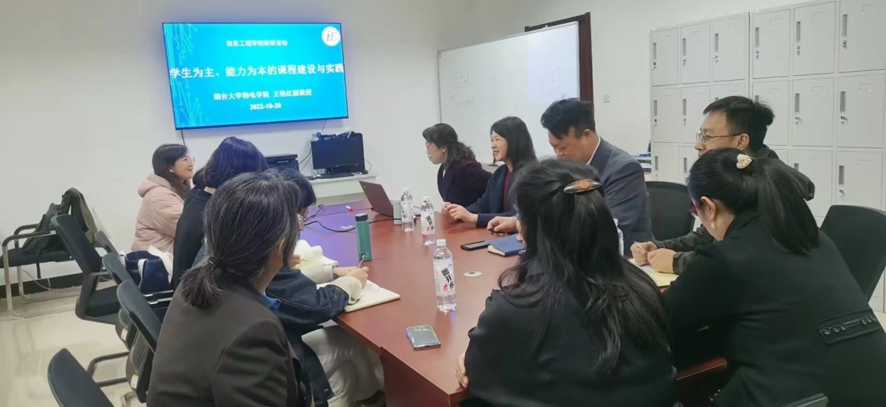 10月20日下午,信息工程学院开展教研活动,邀请烟台大学物理与电子信息学院王艳红老师做了题为“学生为主、能力为本的课程建设与实践”的报告。报告由荆蕾老师主持,信息工程学院全体教师参加。