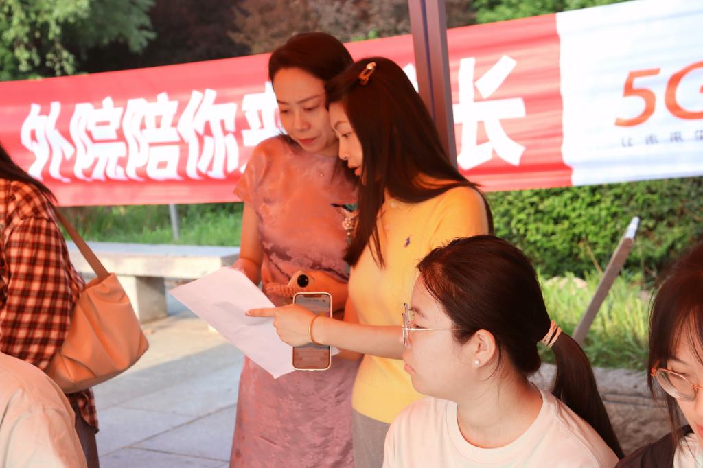 在迎新工作开展的过程中,外国语学院院长刘白玉、党总支副书记赵蓓、团总支书记董瀚文和辅导员郭亚军、徐爽、纪俞舟也来到新生报到处,指导新生工作。为了全面了解新生的情况与需求,志愿者们也在迎新过程中一直与新生班主任保持联系,遇到问题及时解决。外国语学院的师生们都在为迎新工作而忙碌着。