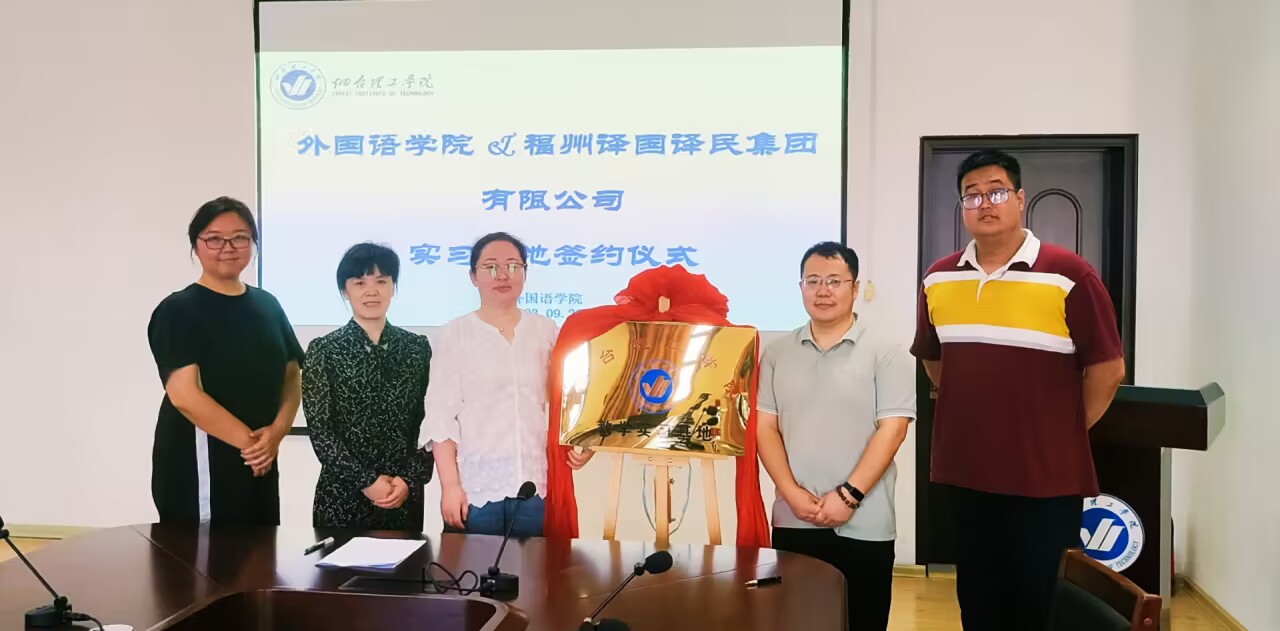 9月28日上午,外国语学院于二教六楼会议室与福州译国译民集团有限公司进行了实习基地签约仪式,福州译国译民集团有限公司产品经理王晓飞、外国语学院党总支副书记赵蓓、院长助理张丽、商务英语教研室主任薛桂丹、英语系副主任徐家南出席了本次活动。